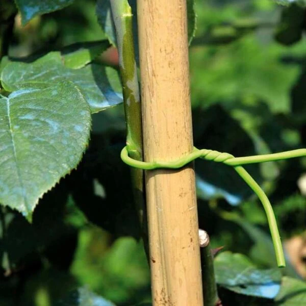 Deze metalen binddraad met een rubberen coating is geschikt voor het vastzetten van klimplanten en het begeleiden van bonen langs stokken. Door het zachte rubber beschadigen de plantenstengels niet. Knopen is niet nodig: met een “twist” zit het vast!