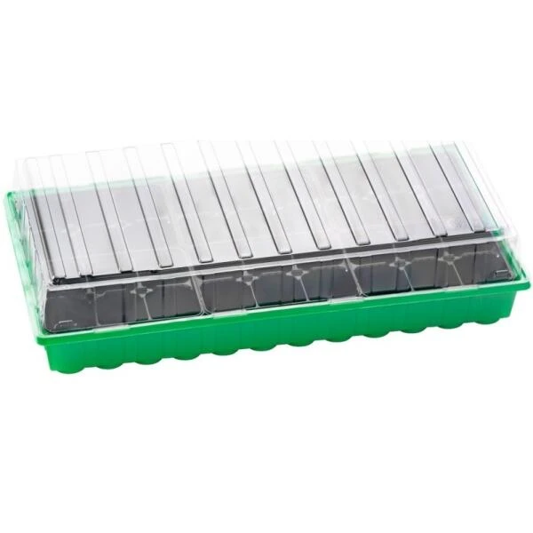 Deze kweekkas wordt geleverd met 6 trays met elk 6 vierkante potjes. Onder het transparante deksel ontstaat het perfecte opkweekklimaat voor de groei.