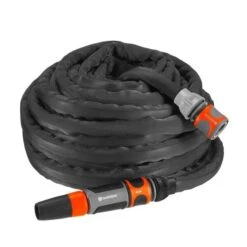 De GARDENA textielslang Lianoâ„¢, gemaakt van zeer duurzaam textiel, is bijzonder handig in gebruik en uitzonderlijk wendbaar. Zelfs als de slang over het terras wordt gesleept of in contact komt met doornachtige rozenstruiken, zal hij niet worden beschadigd. Bovendien is de slang met een scheurdruk van 35 bar geschikt voor gebruik met elke waterdruk.